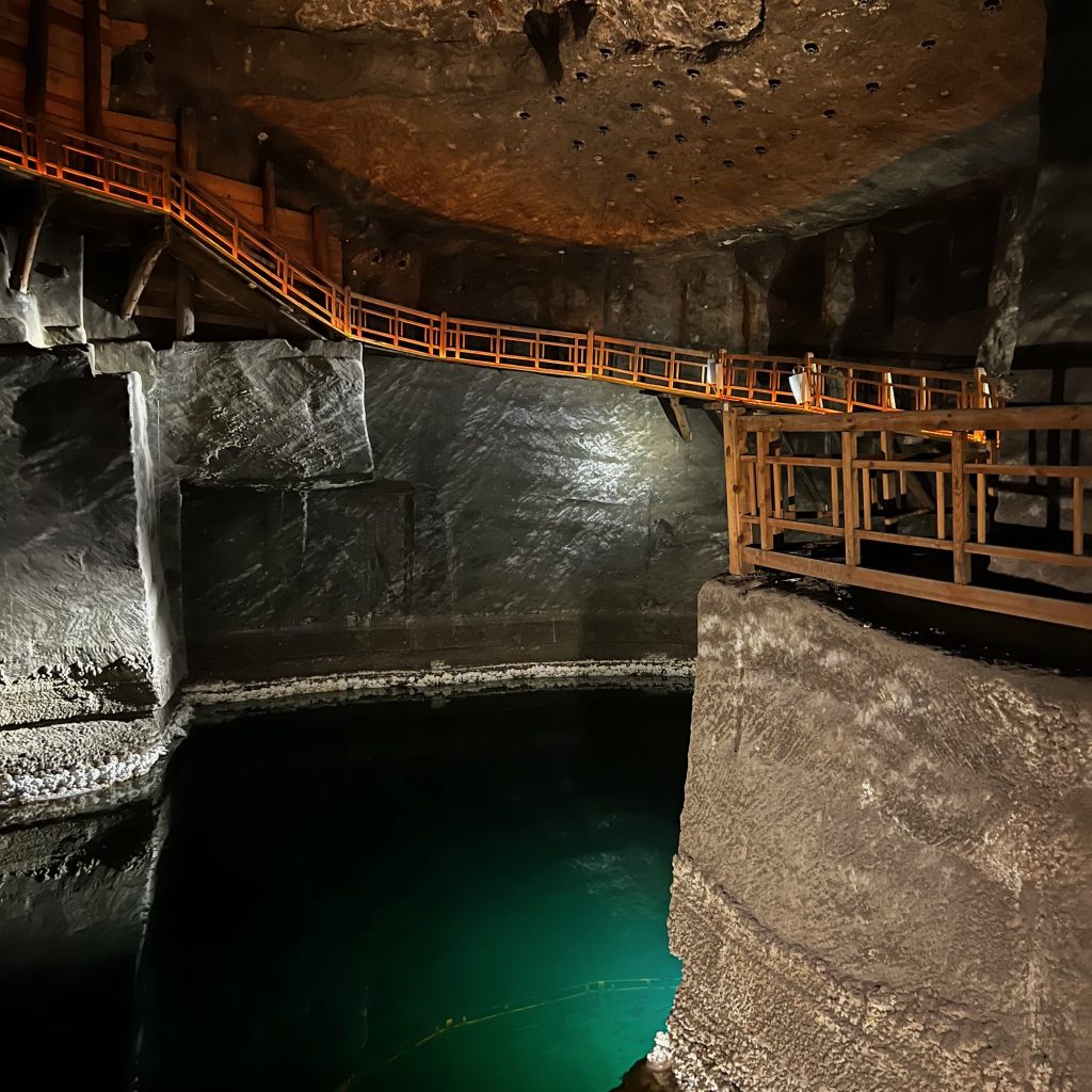 At 11am, we checked our bags into the luggage hold and caught up with our group before heading into the Salt Mine. Now, when they say your tour starts with “a number of stairs”, they’re not joking. I don’t know if it was the feeling of descending into (almost) darkness or that the steps are a spiral staircase, but I’m pretty sure I have vertigo. We walked around, and around, and around until we were finally 55 floors underground.