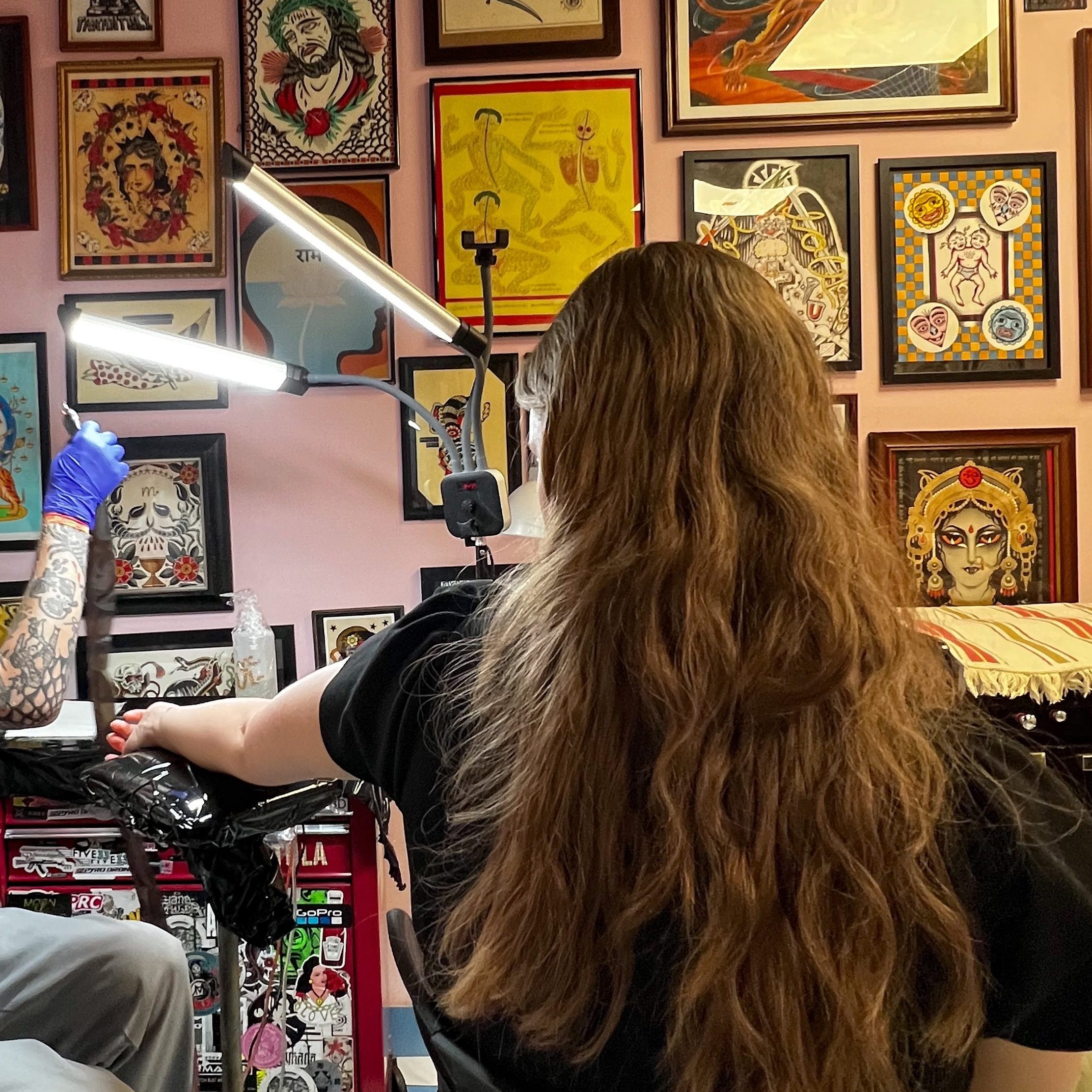 The tattoo studio is beautiful; artwork covered the walls from ceiling to floor, and every artist greets us like an old friend. But our session felt like a fever dream from start to finish, and we both agreed that had we not had the tattoos to prove it, we might not have believed it happened.